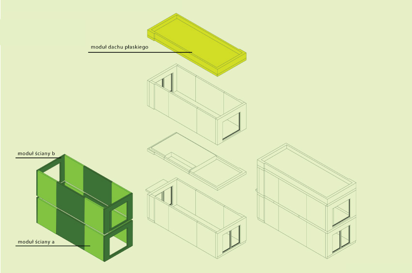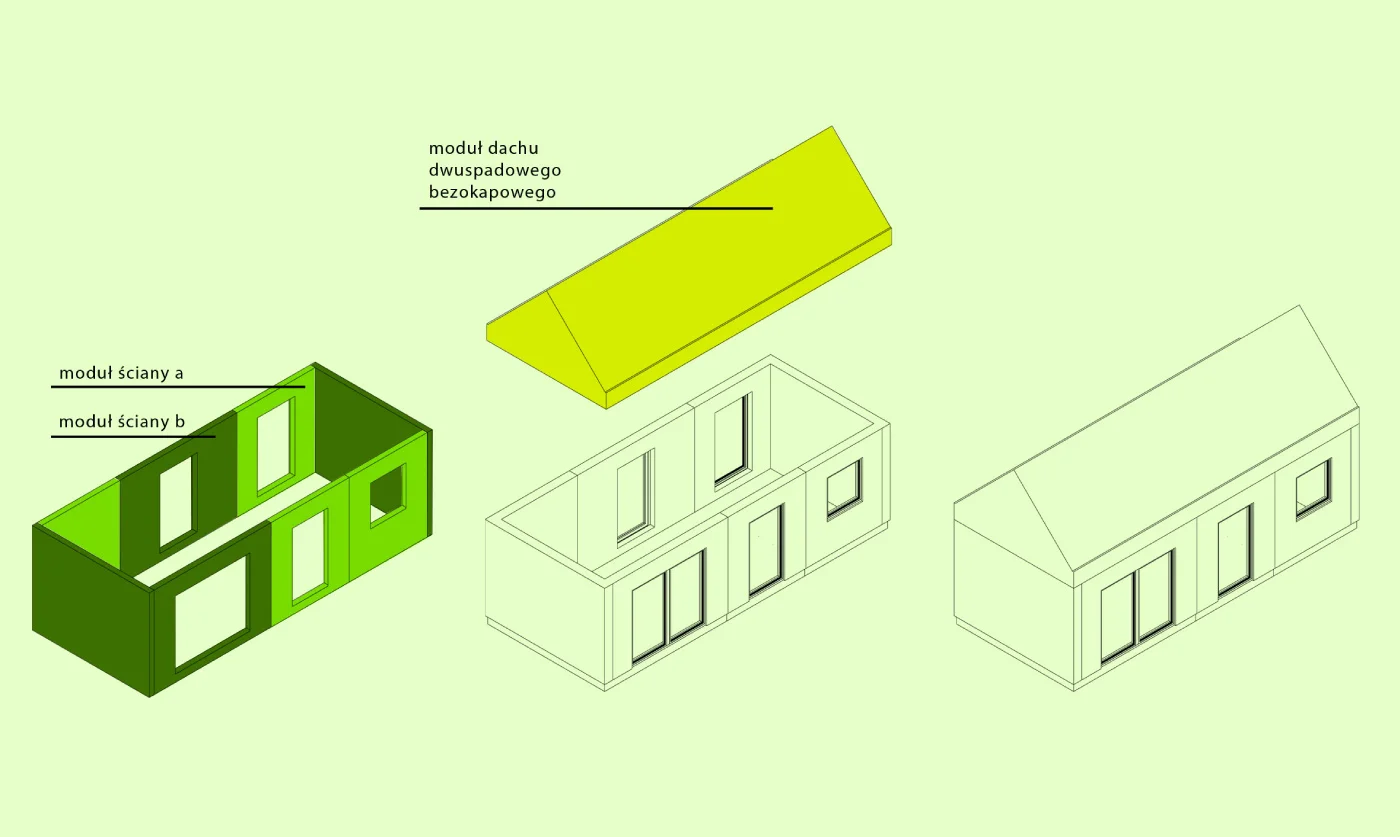 Moduły można dowolnie zestawiać, co pozwala dostosować układ i wielkość budynku do indywidualnych potrzeb.